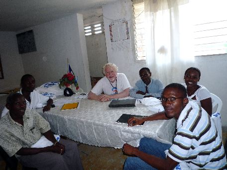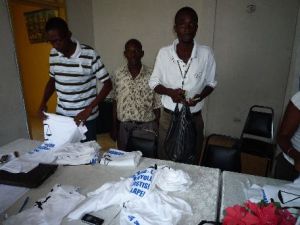 The culmination of the day was meeting with 3 reps from the Grand Ravin CHRC, Marc-Lucann Ducasse, Patrick Estimphil, and Jean Ernest Point du Jour. Marvelous, thoughful persons with the same dedication and skill and concern I’ve seen consistently with the Grand Ravin and other CHRC’s. These are experts without the credentials in non-violent justice advocacy. If only we could get a smidgin of the funding that so many other undertakings receive. I’m thinking of the USAID funded operations for weapons and defense for one example. These men recounted the numerous shootings of innocents just in the recent past and how they are still succeeding in negotiating with armed men to cease the violence. They were very happy with the justice Tees I brought. They want visibility to help them be recognized and respected. They are ready to open an office for which we will be donating the first CHRC solar powered communication system.