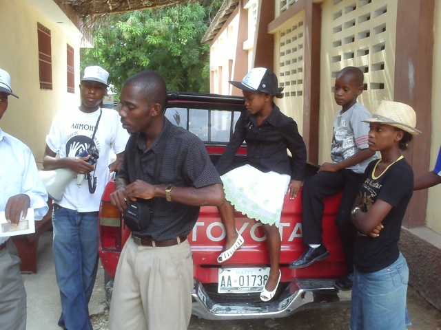 Below is the town square at Aquin, Haiti, with the St. Thomas Aquinas in the background. Even today, no one dares go inside for services, so they hold them outdoors.