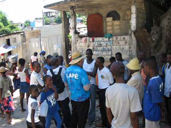 Tom Luce with Esterne Bruner, Grand Ravine Human Rights Council leader, victims and other aid groups discuss what to do after 300+ homes were burned and 20 innocent people were murdered. Sept. 2006